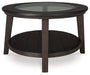 If you're looking for accent pieces with traditional elements that also fit in modern farmhouse settings, you've found them. A rich finish bathes the Celamar occasional table package, while the coffee table's glass inset design adds a lovely layer of dimension. Enjoy the timeless casual styling this set brings to your home.